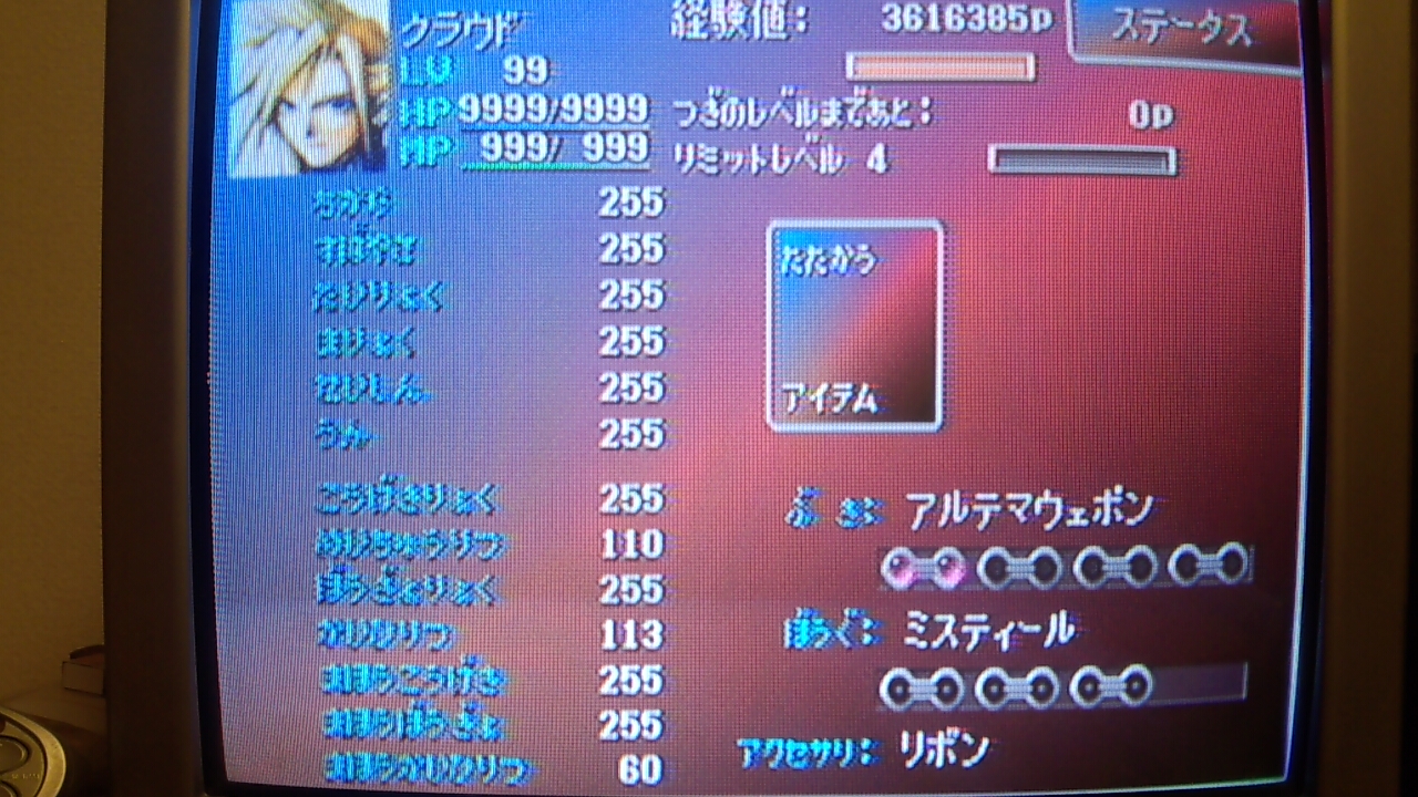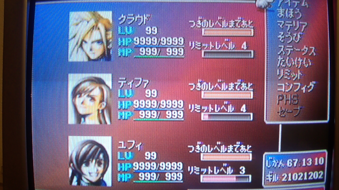 マテリア(一時ステータスアップアイテム)で底上げしてるよ。
